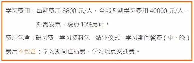 学制:共5期(也可挑选单期),每期2天,均在周末两天。