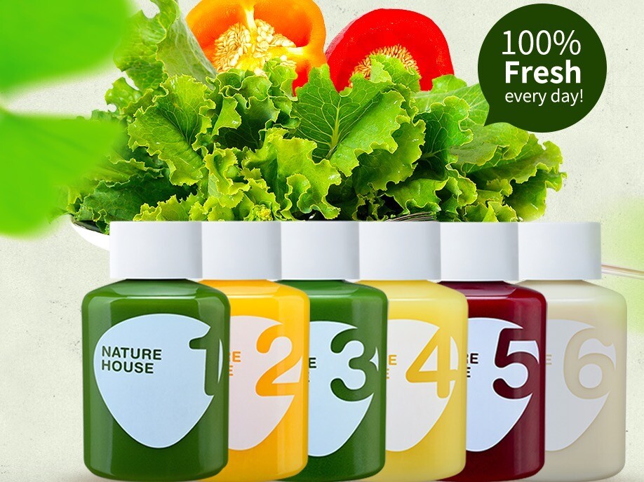 “纯亭Nature house”轻断食的产品理念很有意思:将小麦草、三叶草、罗马莴苣、苹果、西芹、黄瓜、菠菜、羽衣甘蓝、洋芫荽、柠檬、菠萝、苹果、薄荷叶、梨、欧洲燕麦、葵花籽油等时令蔬果,按比例科学组合,冷榨成不同功效的果汁,在一天中的不同时段按需饮用代餐,2-5天后,通过断食和蔬果排毒,能瘦身排毒,调节身体机能,改善饮食习惯,身体倍感轻松。